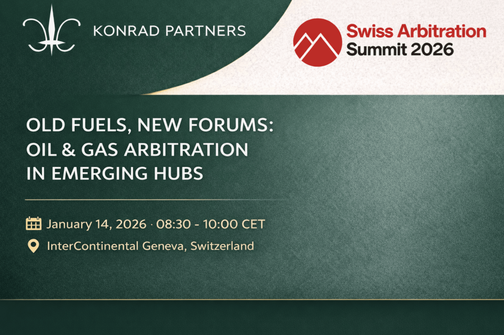 Konrad Partners to Participate in the Panel “Old Fuels, New Forums: Oil & Gas Arbitration in Emerging Hubs” at the Swiss Arbitration Summit 2026, Geneva