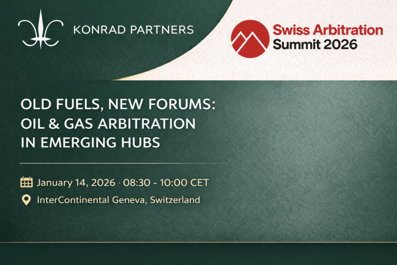 Konrad Partners to Participate in the Panel “Old Fuels, New Forums: Oil & Gas Arbitration in Emerging Hubs” at the Swiss Arbitration Summit 2026, Geneva
